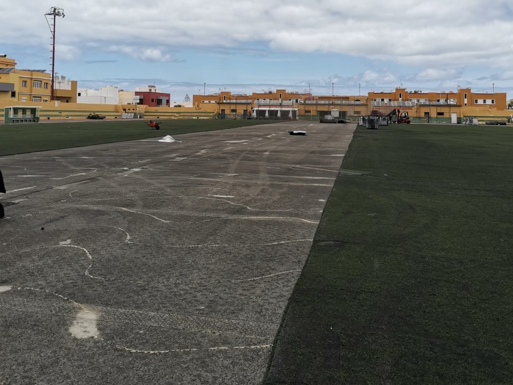 Comienza la colocación del nuevo césped artificial en el Estadio de Barrial