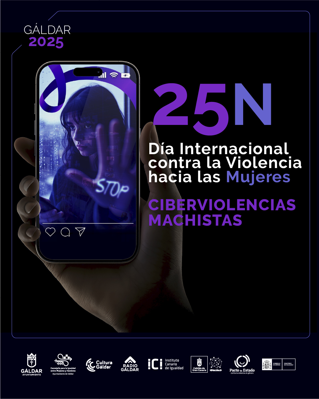 El Ayuntamiento de Gáldar, a través de la Concejalía de Igualdad entre Mujeres y Hombres, que dirige Ana Teresa Mendoza Jiménez, ha diseñado una amplia y variada programación de actividades con motivo del Día Internacional contra la Violencia hacia las Mujeres, que se conmemora el próximo 25 de noviembre. Las jornadas, que este año centran su atención en las ciberviolencias machistas —un fenómeno en aumento y profundamente arraigado en la sociedad digital—, tienen como objetivo sensibilizar, educar, informar, ofrecer apoyo y movilizar a la ciudadanía frente a todas las manifestaciones de la violencia de género.